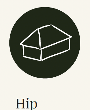 Hip A more challenging construction that looks like a gabled roof but with four sides instead of two, is the Hip or Hipped roof. Hip construction is popular, and suits many larger builds, especially in high wind areas. But some builders will find it is more challenging to build, and to ventilate. That said, a hip roof could work well on an addition. A hip roof typically slopes down and meets the home’s walls, whereas the gable roof reaches out to the bottom of the eaves. The “hip” is the angle formed where two sides meet.