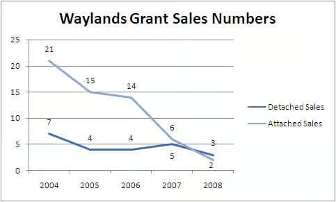 However, if we dig a little deeper into these single family home values, we’ll see that it actually isn’t quite as bad as it appears. The average Waylands Grant home that sold between 2004 and 2008 was around 2775 square feet. Since the 2009 samplings are significantly larger, it’s like comparing apples to oranges.