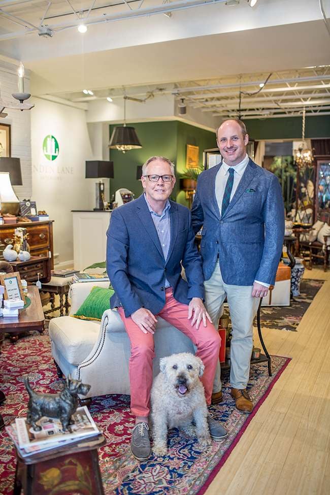 Pop in to meet the delightful Coggins, pictured on right, his partner Brian Glade, and their sweet dog Belle, who can often be found happily roaming around the store.