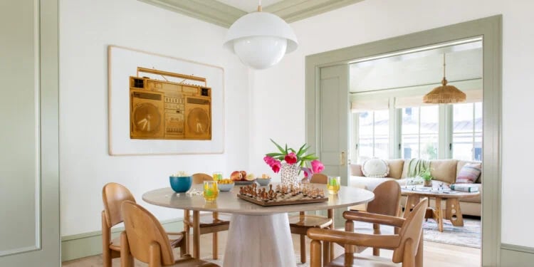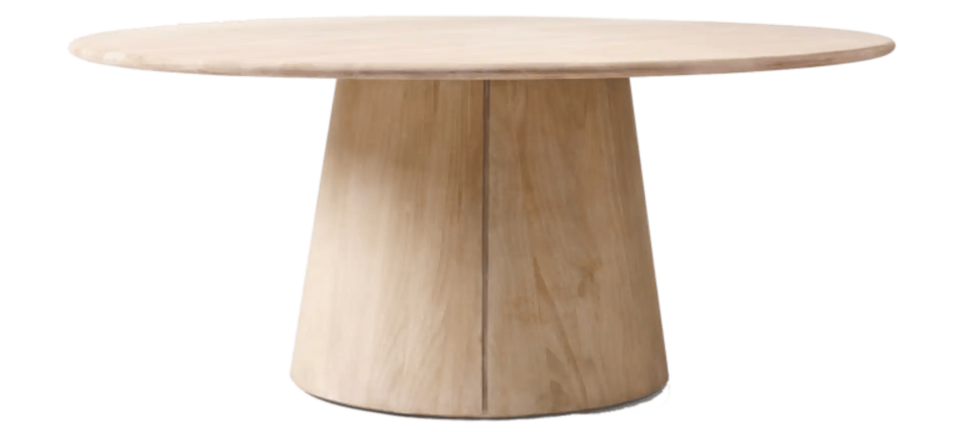 The graceful curves of this table make it feel like a piece of art. Crafted from mango wood, the cerused white finish feels fresh and beachy. Anton Round Pedestal Dining Table, 72”, $1,700, westelm.com