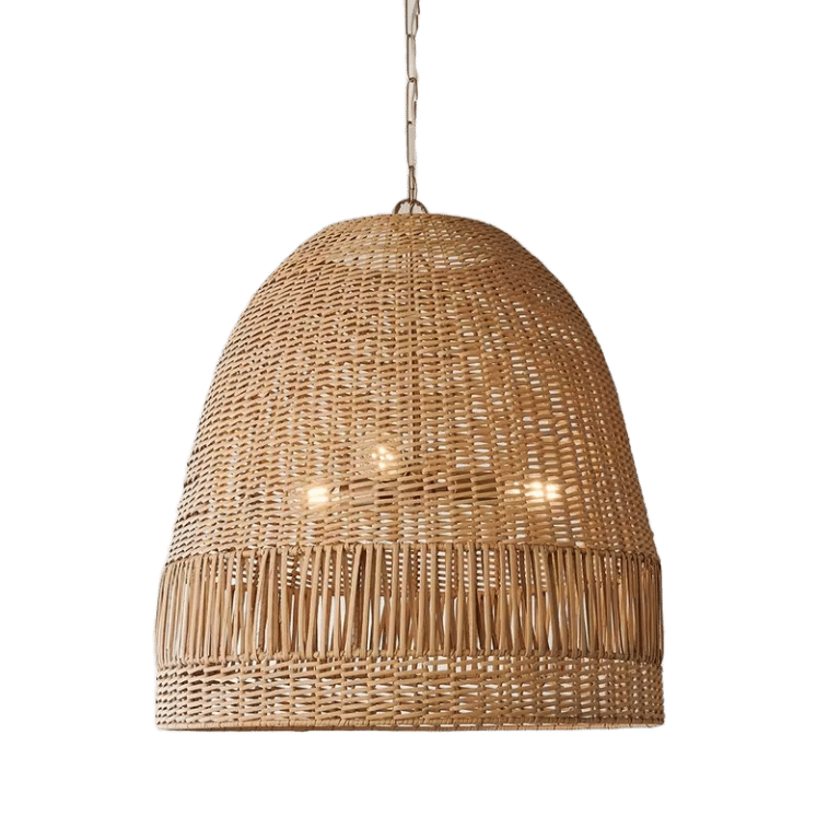 Combining handmade textures and organic materials, this boho chic pendant is playful and fun. Channel Side Dome Pendant, Large, Natural Rattan, $598, shadesoflight.com