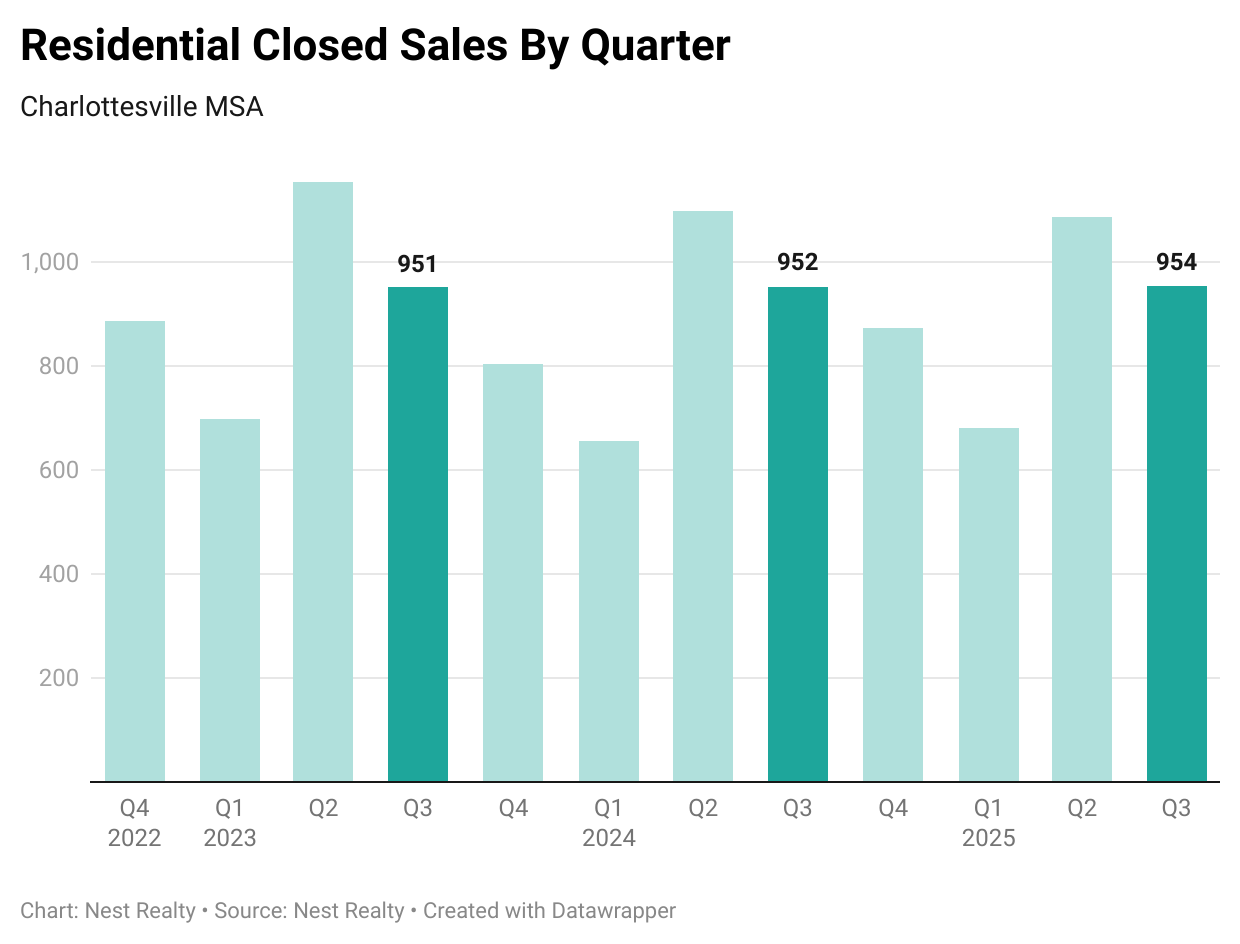 - There were 954 closed residential sales, virtually unchanged from 952 in the third quarter of 2024.